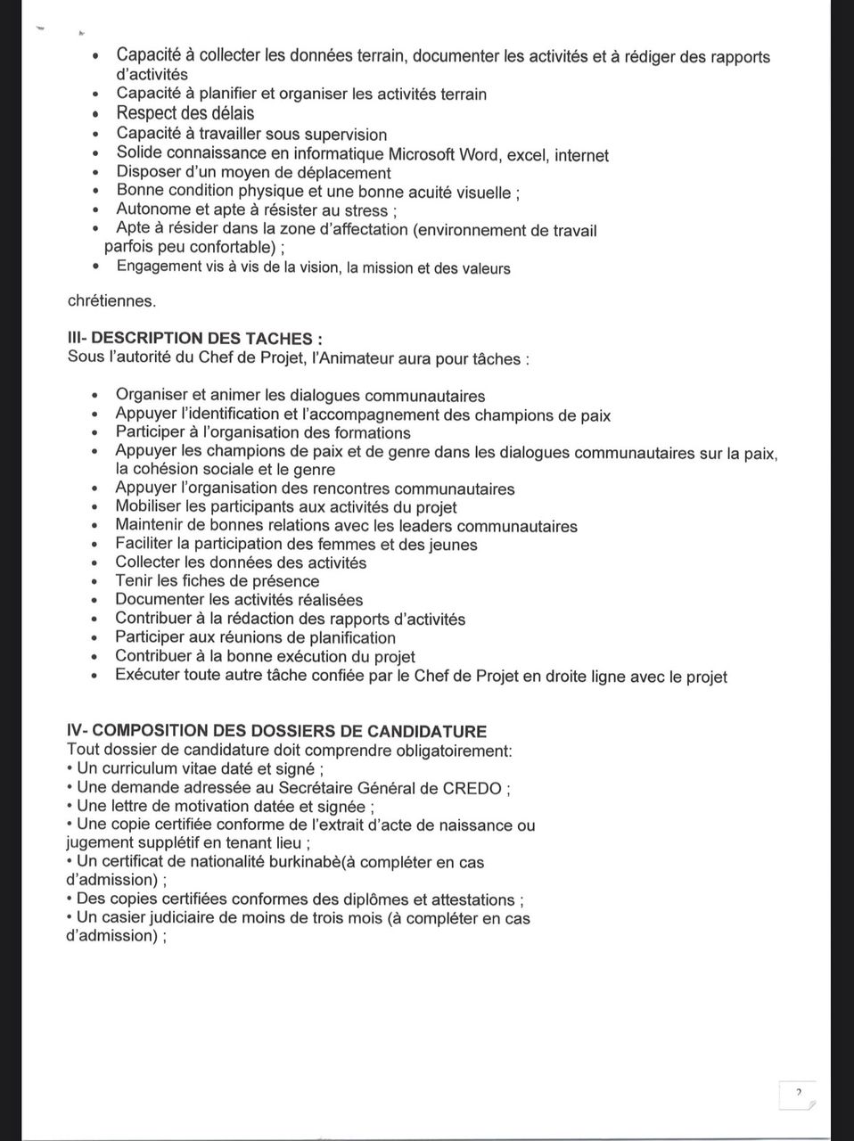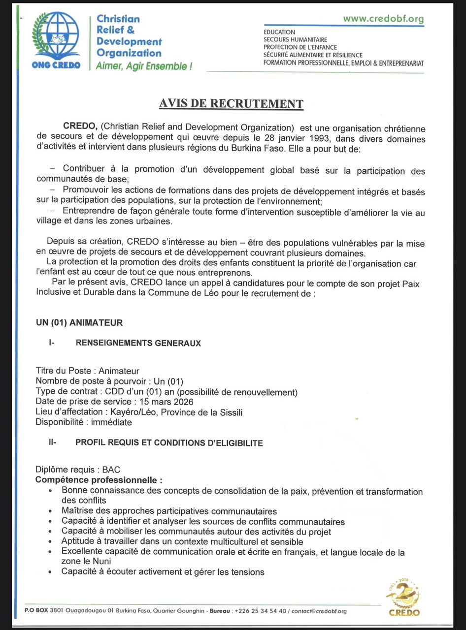 [AVIS DE RECRUTEMENT D’UN(E) ANIMATEUR(TRICE)]